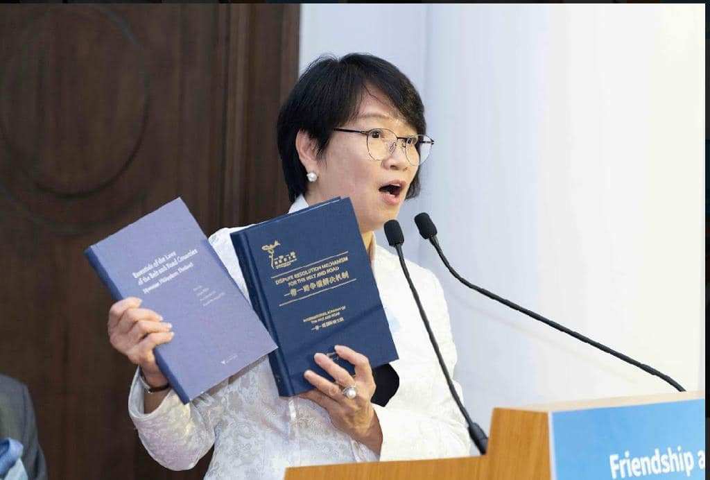 梁美芬:聯同內自30多個國家的專家顧問及五大洲的國際化學者在香港前終審法院大樓一同發佈「一帶一路」合作與夥伴關係協議範本( Model Rules )