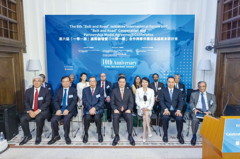 在儀式上,浙江大學國際戰略與法律研究院院長王貴國教授,連同梁美芬教授向各位主禮嘉賓贈送《「一帶一路」合作與伙伴關係協議範本》。