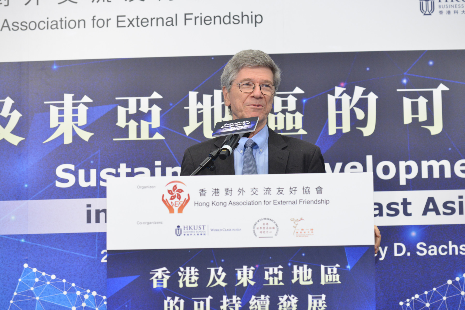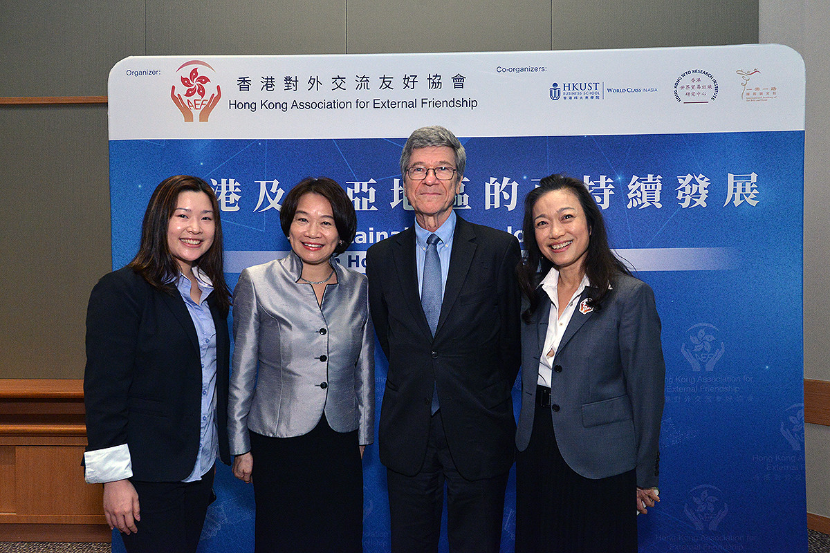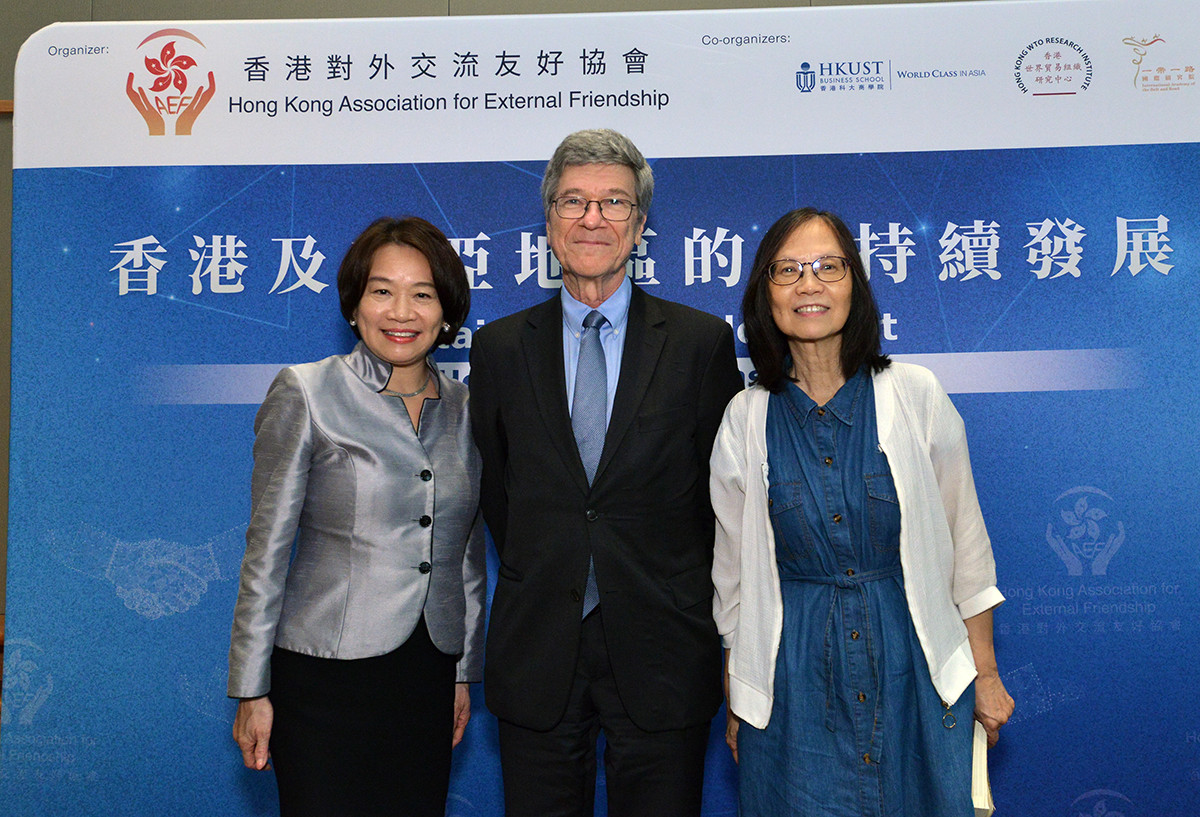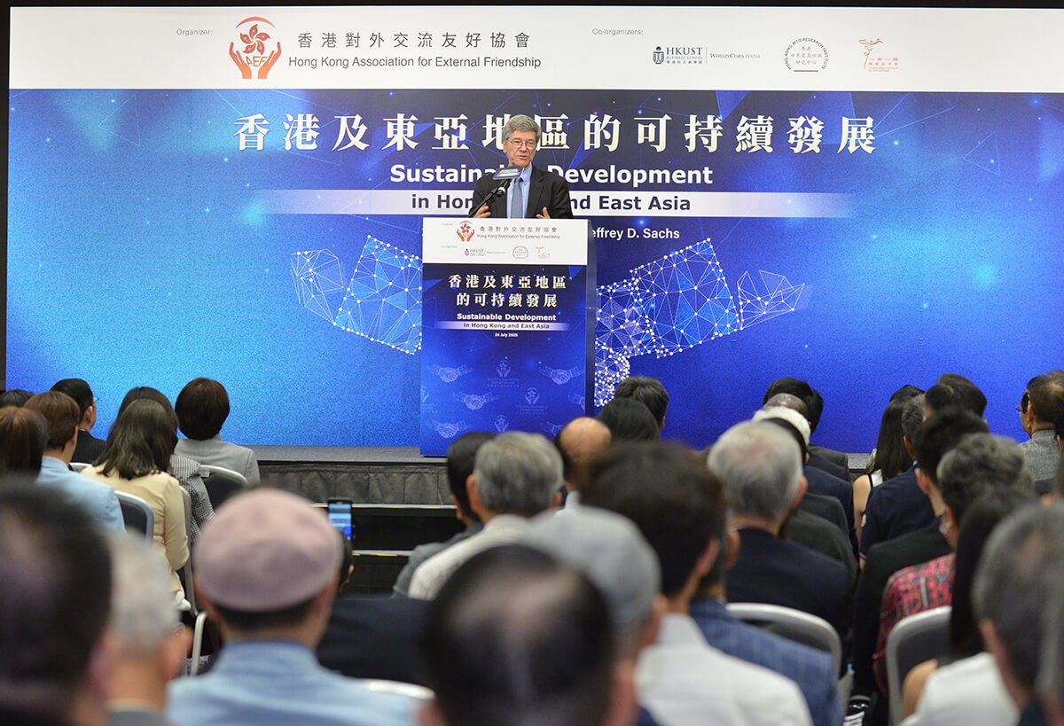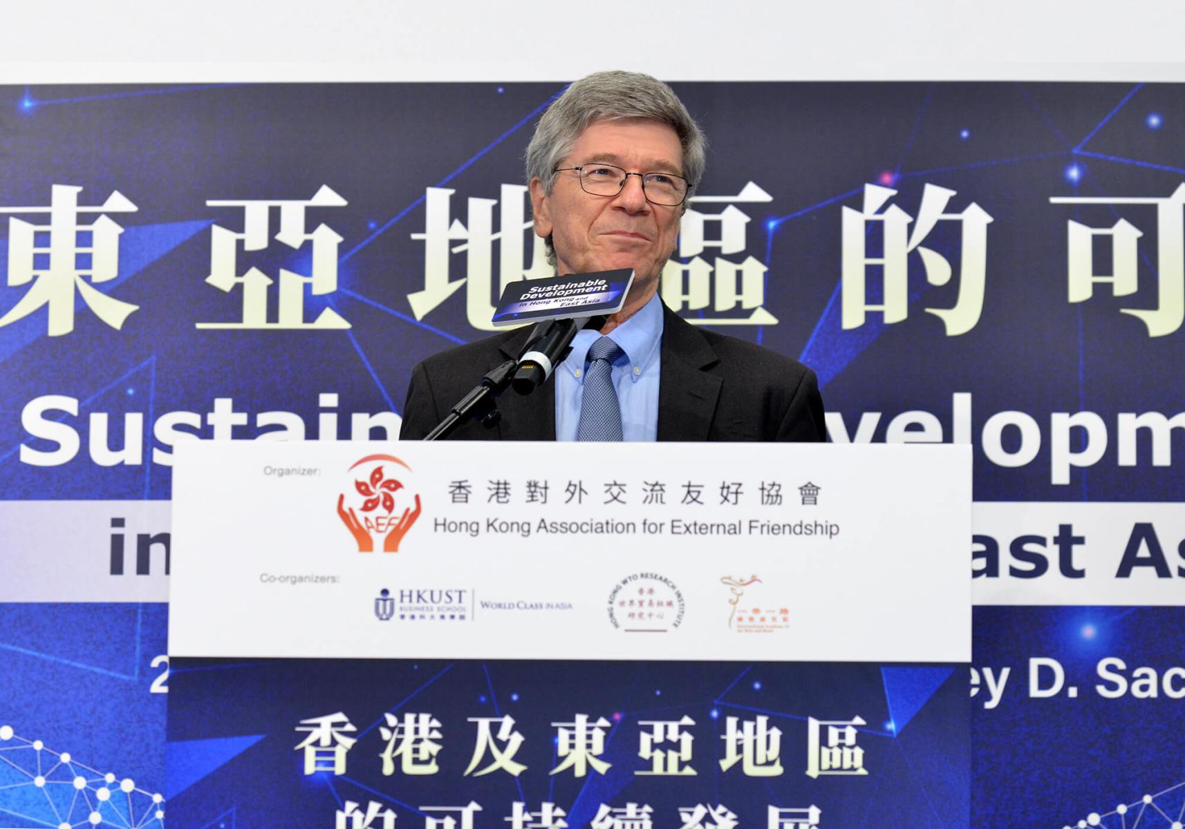 世界著名經濟學家傑佛瑞·薩克斯教授 (Professor Jeffrey D. Sachs) 今日在主題演講中表示,在不斷變化的全球秩序中,香港前景光明。薩克斯教授是哥倫比亞大學的著名教授和領先的公共政策分析師,他在港發表關於「香港和東亞地的可持續發展」的見解。專題講座由香港對外交流友好協會(HKAEF) 主辦、香港科技大學商學院、香港世界貿易組織研究中心、一帶一路國際研究院聯合協辦,該活動吸引了300多名與會者出席。